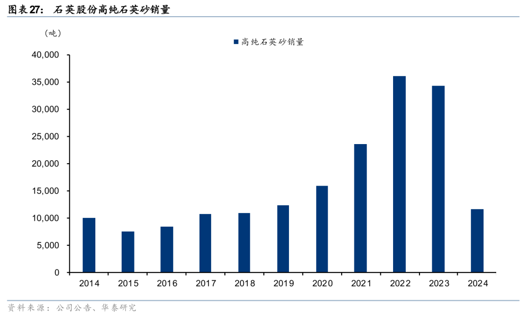 根据各公司石英纤维项目环境影响评价报告,我们预计生产1亿米石英纤维布大约需要用到6000-8000吨石英纤维,考虑石英砂在提纯和生产过程中的损耗,我们保守预计至少需要用到1万吨高纯石英砂。而据石英股份,2024年公司高纯石英砂销量为1.2万吨,未来若石英纤维布需求快速放量,或对公司高纯石英砂业务带来明显增量。