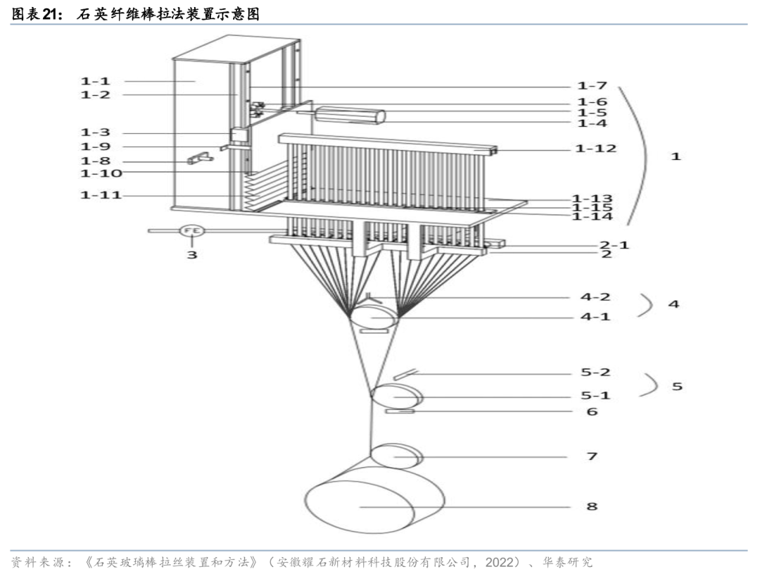若石英纤维布需求大幅增长,高纯石英砂原料或成为关键。由于石英纤维需要使用纯度较高的高纯石英砂(通常为4N及以上)作为原料,若原材料质量不稳定,则可能导致最终产品质量以及性能出现问题。当前大部分石英纤维公司均通过外采石英棒的形式生产石英纤维,未来若石英纤维的需求大幅增加,则原材料的质量以及稳定供应将成为影响生产的重要因素,除了具备全产业链供应能力的公司(如菲利华)外,具备批量稳定高纯石英砂等原材料供应能力的企业也有望受益。据公司公告及我们统计,目前国内具备量产高纯石英砂产能的公司主要包括石英股份、凯盛科技、中旗新材等。