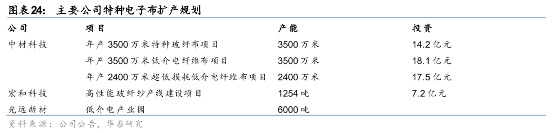 8月公司接连公告拟投资18.1/17.5亿元建设3500/2400万米低介电纤维布/超低损耗低介电纤维布项目,项目建设周期均为18个月。