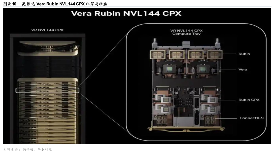 关注技术路线变化对特种电子布性能及用量要求提升,英伟达下一代架构Rubin Ultra的正交背板或采用搭载Q布的M9覆铜板。在2025年3月的GTC大会上,英伟达公布了其下一代GPU硬件路线图,计划于2026年下半年(26H2)推出VeraRubinNVL144机柜,并于2027年下半年(27H2)推出升级版RubinUltraNVL576机柜。其中,RubinUltraNVL576机柜采用创新设计,其GPU计算托盘以90度旋转方式集成,通过PCB正交背板替代传统铜缆背板,实现机架内GPU与NVSwitch的高速互联。9月9日,英伟达在AI基础设施峰会上发布其新一代Rubin CPX芯片系统,该系统专为处理大规模上下文AI任务而设计,尤其是在AI视频生成和软件开发领域,能够实现数百万token的推理,公司预计Rubin CPX将于2026年底上市。