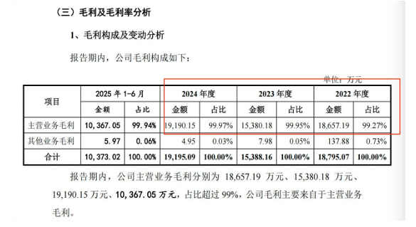 招股书中披露,优迅芯片的“主营业务成本按性质构成”中,原材料和封测费占比高达96%以上,而软件成本几乎为零。这一结构与其每年上亿元的“软件收入”形成明显反差,显示所谓的软件销售并未产生真实的研发和成本支出。