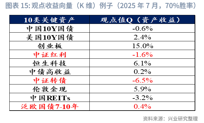 本研究基于历史收益率数据与预设胜率,生成具有可控正确率的模拟主观观点。结合当前覆盖的大类资产及研究特点,选取以下10类关键资产作为观点生成对象:中国10Y国债、美国10Y国债、创业板、中证红利、恒生科技、中债高收益、中证转债、伦敦金现、中国REITs、泛欧国债7-10年。具体构建方法如下: