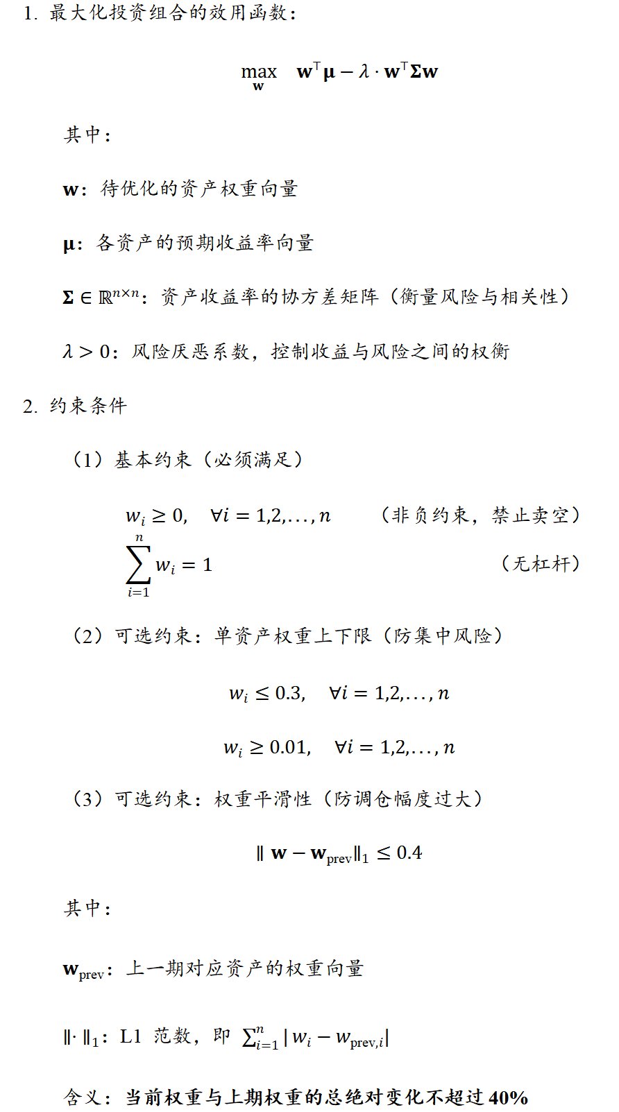 约束条件的设计充分考虑了实际投资场景中的合规要求与操作可行性,具体包括: