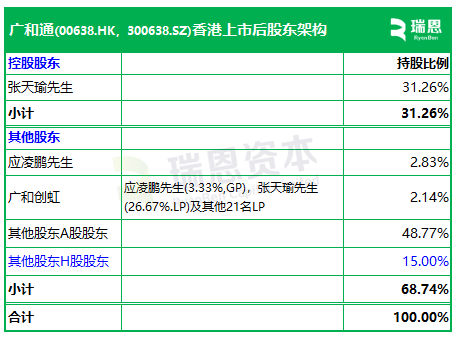 招股书显示,广和通在香港上市后的股东架构中,控股股东张天瑜先生,持股31.26%。