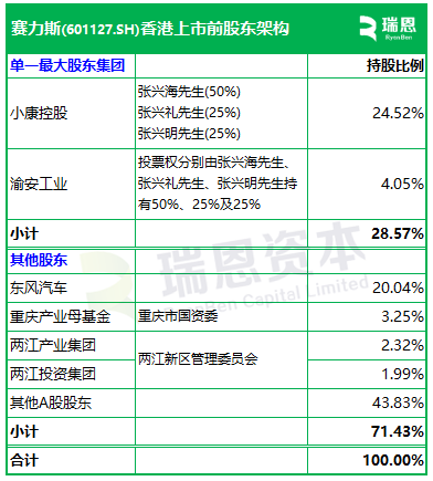 招股书显示,赛力斯在香港上市前的股东架构中,