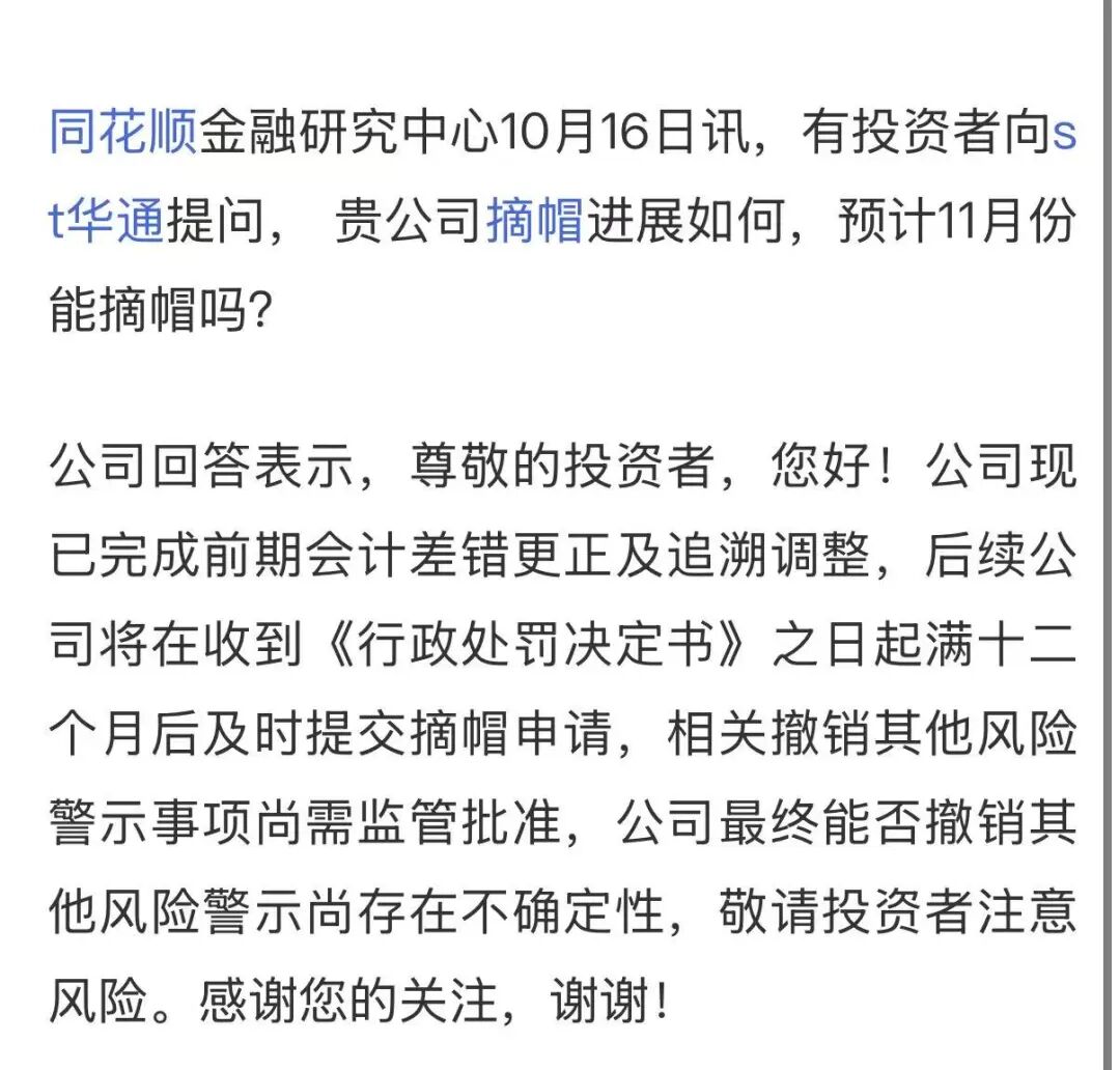通过最近的调研和公司自己对外的公告可以看出来,11月份华通摘帽基本上是铁板钉钉的事情,而有一大批,低位建仓的小伙伴,把摘帽视为最后一次博弈,摘帽完就基本上跑了,所以从交易层面上来看,摘帽并不是个好事,最近的跌幅,一定程度上可以看作摘帽的抢跑,当然也有欧盟最近法案的影响,我们后面会详细说。