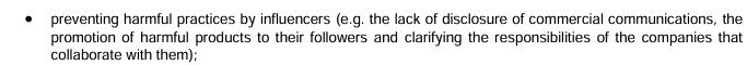 后面这几条都非常有意思,人家立法了,直接给了例子,这里举的例子是“未披露商业传播信息、向粉丝群体推广有害产品,以及明确与之合作的企业的责任”