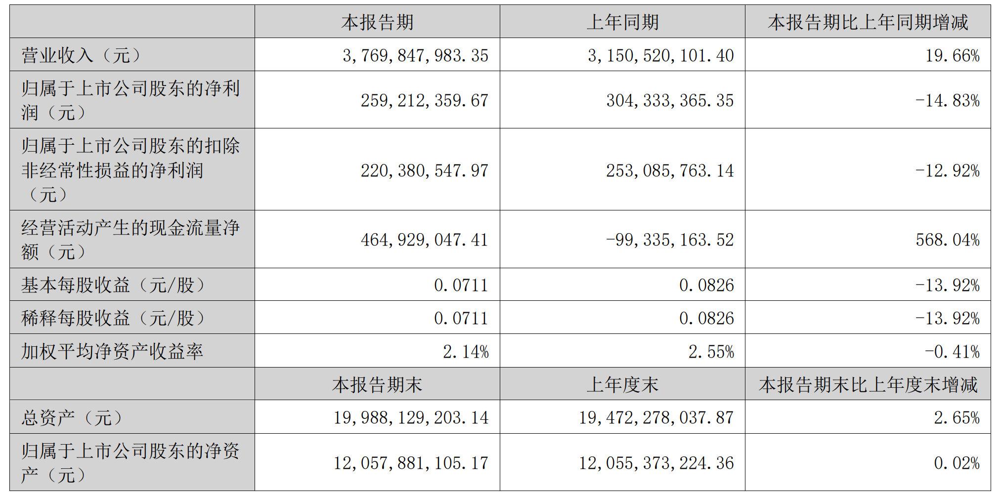 财报显示,2025年上半年,中核钛白实现营业总收入37.7亿元,同比增长19.66%;归母净利润2.59亿元,同比下降14.83%。