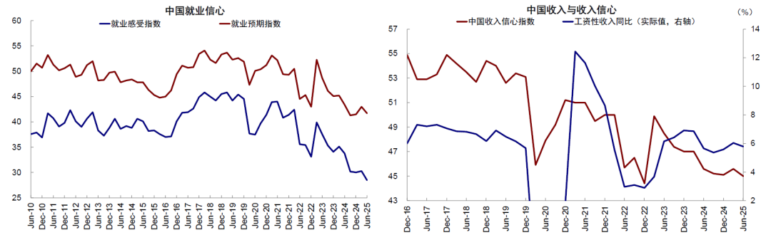 图表:当前中国就业预期和收入预期均出现一定程度下滑