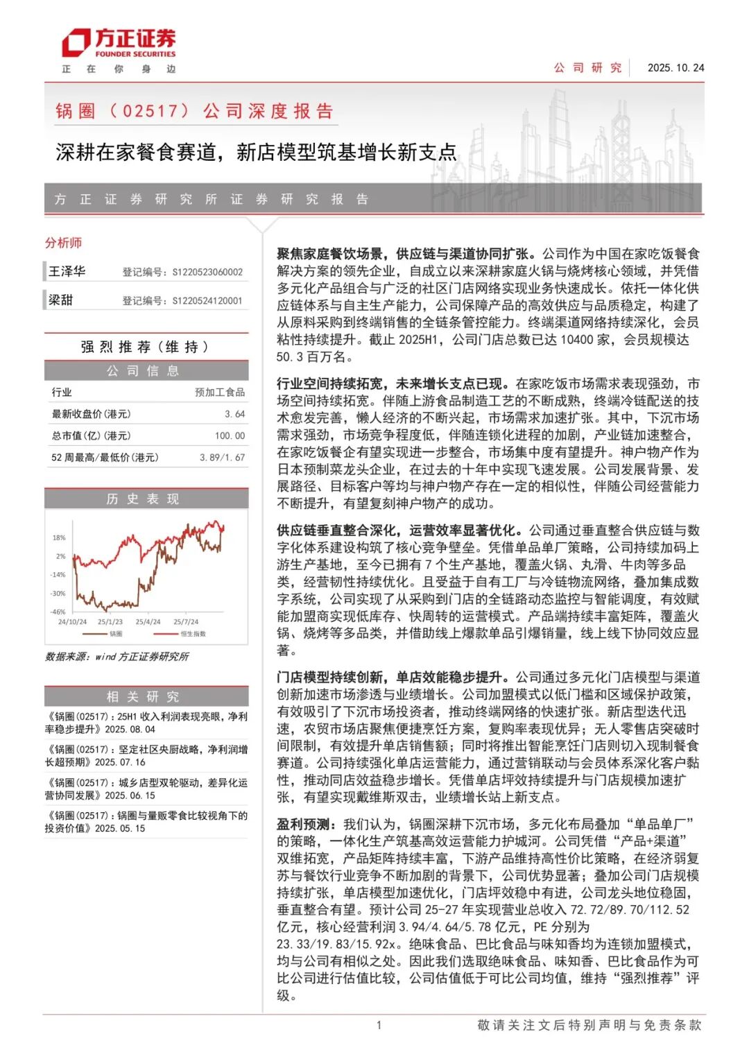 本文来自方正证券研究所于2025年10月24日发布的报告《锅圈(02517):深耕在家餐食赛道,新店模型筑基增长新支点》,欲了解具体内容,请阅读报告原文