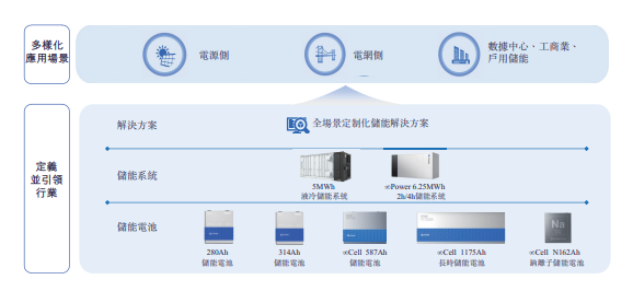 海辰储能的收入主要来自于销售储能电池及储能系统,公司专注于定制化的综合储能解决方案,全面覆盖各类不同储能应用场景的需求,包括: