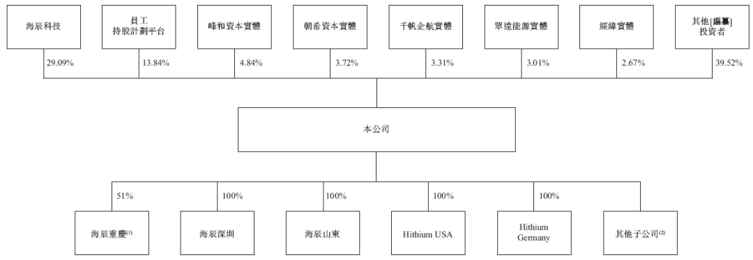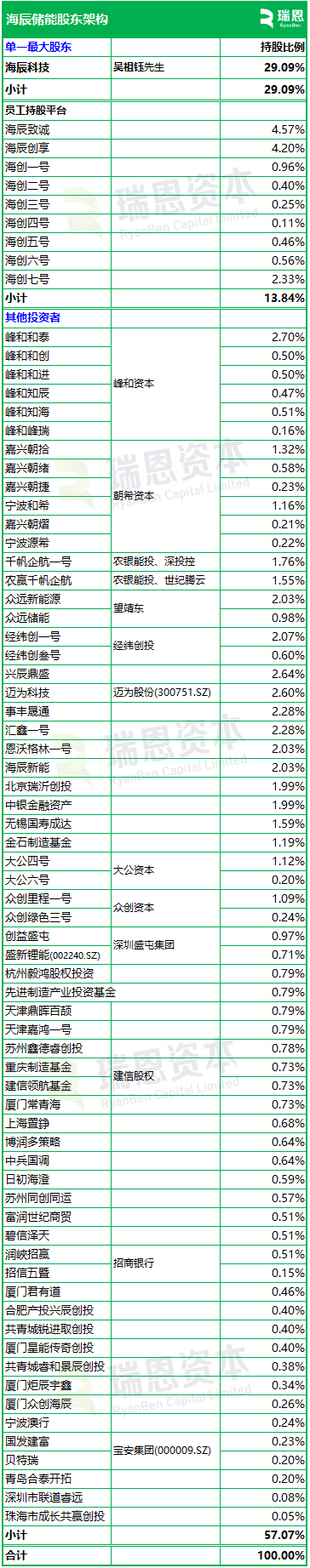 招股书显示,海辰储能在香港上市前的股东架构中,