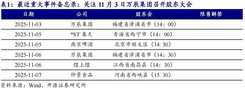 2、食品饮料板块中,其他食品(+0.0%)、肉制品(-0.0%)、其他酒类(-0.6%)表现相对靠前。泉阳泉、欢乐家、香飘飘涨幅领先。