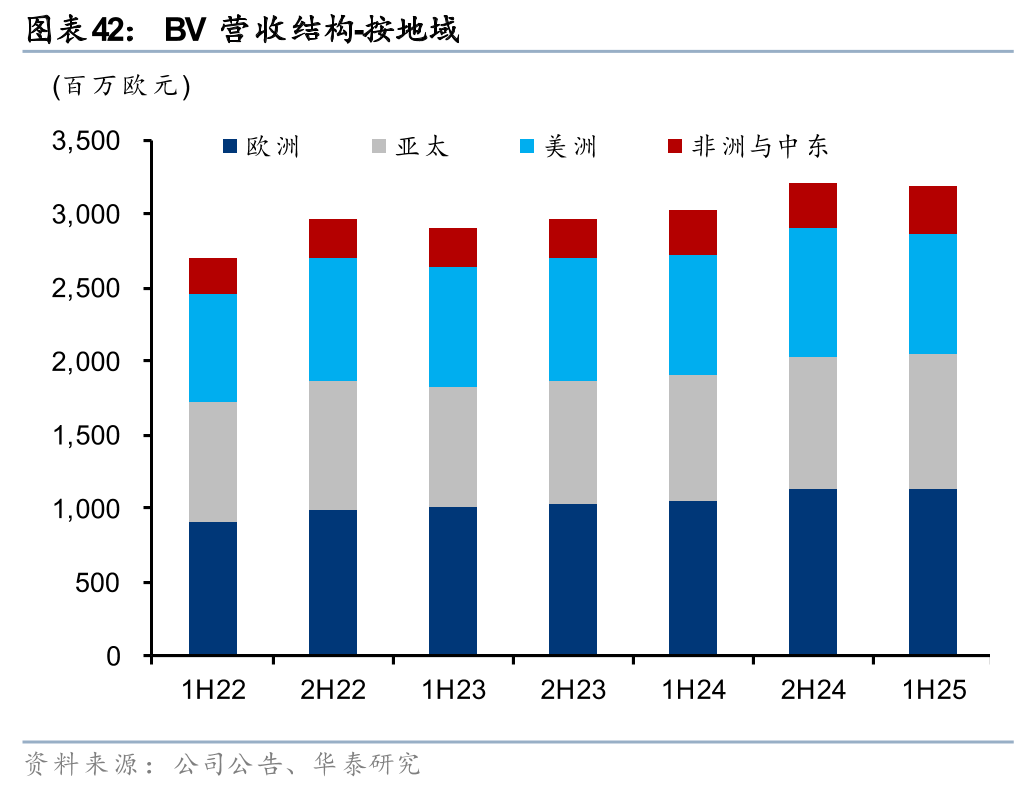 并购方面遵循“互补型”策略,2025年上半年BV完成6项收购,累计年化营收约6000万欧元,重点布局三大方向:一是强化建筑与基础设施领域领导地位(如Contec);二是在电力与可再生能源、网络安全及可持续发展领域建立新核心业务(Dornier Hinneburg GmbH、IFCR、Ecoplus);三是优化成熟业务价值(Lab System、GeoAssay)。同时期BV完成2亿欧元股份回购计划(约占公司股份1.5%),彰显对未来发展信心。组织架构方面,Q2末实施执行委员会领导层调整,强化区域平台优势,促进交叉销售,加速卓越运营和绩效计划实施。