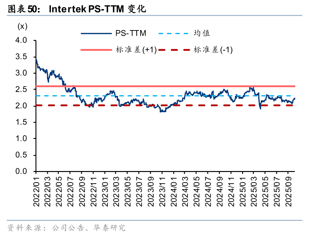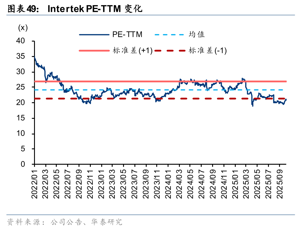当前Intertek的PE(TTM)为22x,PS(TTM)为2.33x。市场看好其三大增长逻辑:一是消费品检测赛道SKU持续扩容(年复合增长8%),带动检测需求稳步提升;二是高毛利业务占比持续提升,1H25达42%,推动整体经营利润率向中期18.5%+目标迈进;三是并购整合能力突出,历史标的18个月并表率达90%,2025年计划新增并购预算3亿,聚焦新能源与可持续发展检测领域。