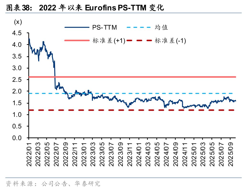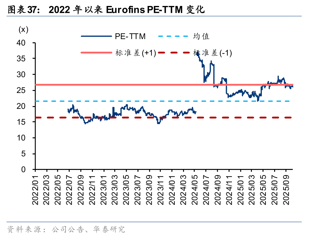 当前Eurofins的PE(TTM)为24x,PS(TTM)为1.47x。市场看好其三大增长逻辑:一是生命科学检测赛道长期增长;二是并购整合能力突出;三是5年投资计划(2023-2027)持续落地,数字化平台建设已投入1.2亿欧元、提升检测效率。