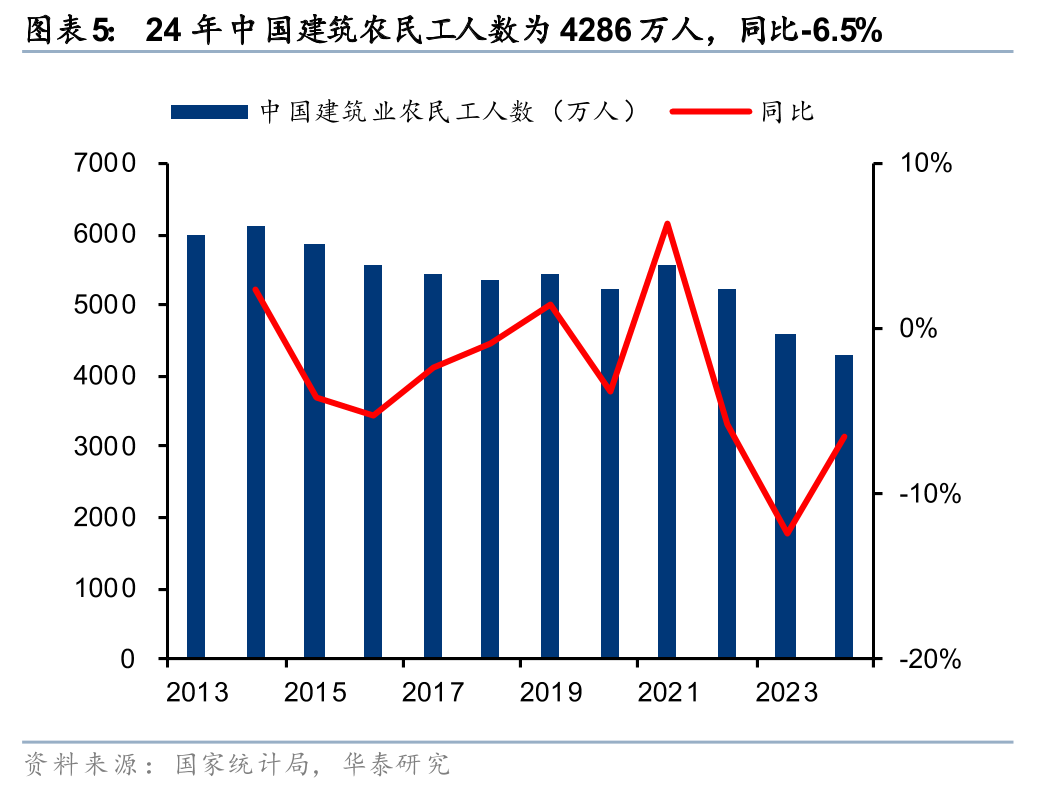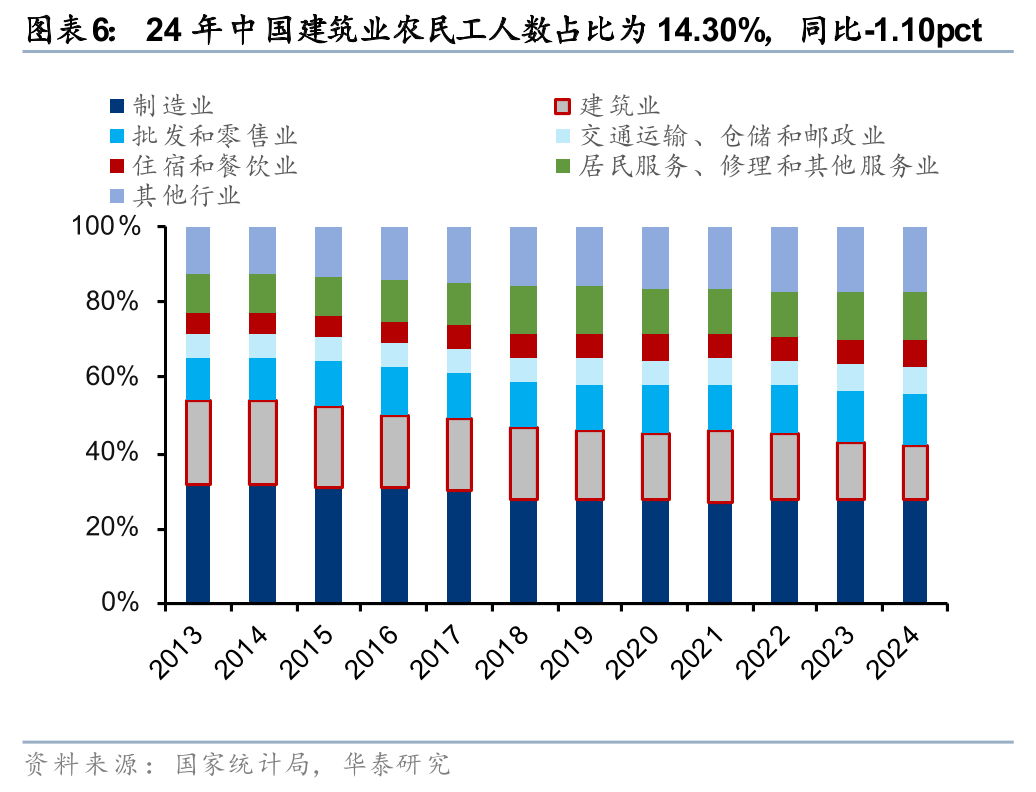 建筑行业劳工短缺、机械化程度低,机器替人是大势所趋。当前我国建筑工人老龄化现象显著,考虑建筑施工高处作业多、露天作业多等高危特点,多地近年来推出了“超龄清退令”。以上海市为例,2019年上海市住建委、市人社局和市总工会共同发文规定:禁止18周岁以下、60周岁以上男性及50周岁以上女性三类人员进入施工现场从事建筑施工作业。另一方面,随着房地产行业近年来相对承压,以及建筑施工作业本身繁重与高危的工作特点,越来越多的农民工转而选择进入服务业,就业结构的变化也进一步加速了建筑业劳工的流失。但由于建筑项目常面临设计变更、场地条件复杂等问题,机械化设备难以快速适应,目前行业机械化程度较低,对人工的依赖程度仍较高。2023年,工业和信息化部、住房和城乡建设部等十七部门联合印发《“机器人+”应用行动实施方案》,提出加速拓展建筑机器人应用。我们认为劳工短缺的困境与政策的有力支持或有望共同加速机器人在建筑行业的应用渗透。