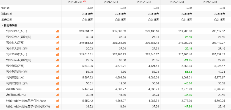 定期报告显示,2024年,福达合金营业收入达到38.51亿元,归母净利润为0.46亿元。2025年前三季度,福达合金实现的营业收入、归母净利润分别为34.97亿元、0.56亿元,同比增长30.03%、33.52%。