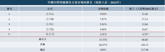 公司坦言,中国空间智能解决方案市场仍竞争激烈且尽管仍相对分散,但近年来已开始向领先企业集中,少数顶尖供应商占据市场主要份额。这些供应商多为大型企业,拥有多年行业经验及广泛客户群。2024年,公司以3.0%的市场份额位居中国空间智能解决方案市场第五位。