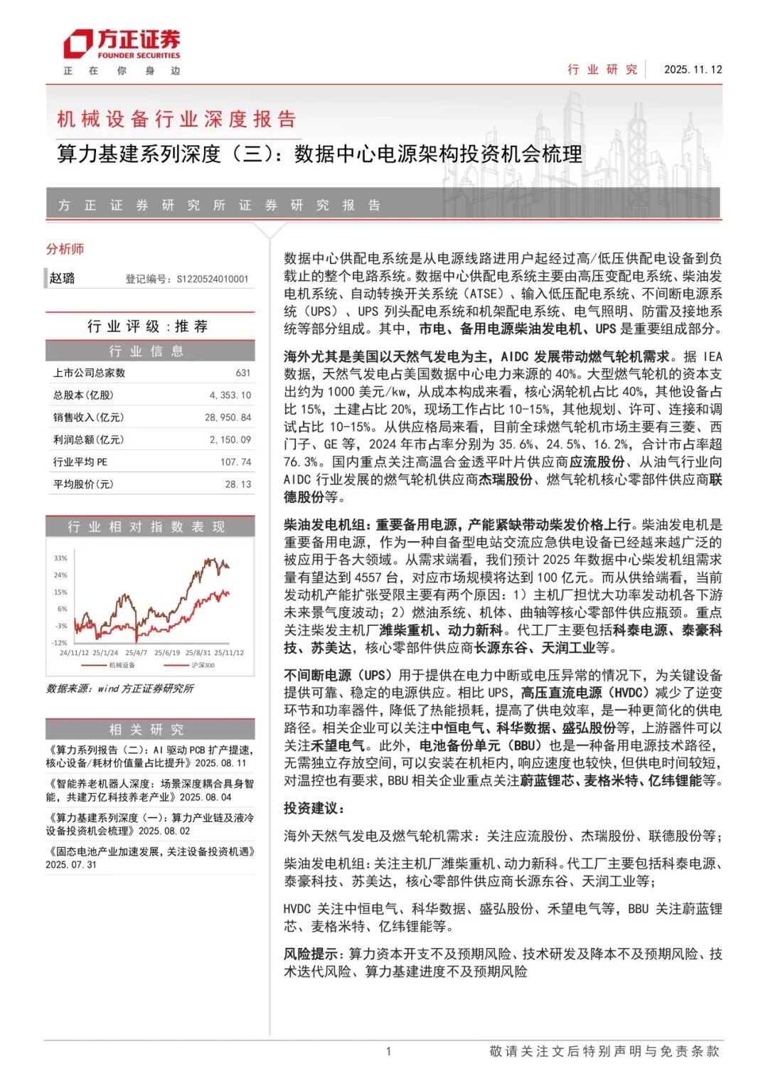 本文来自方正证券研究所于2025年11月16日发布的报告《算力基建系列深度(三):数据中心电源架构投资机会梳理》,欲了解具体内容,请阅读报告原文。
