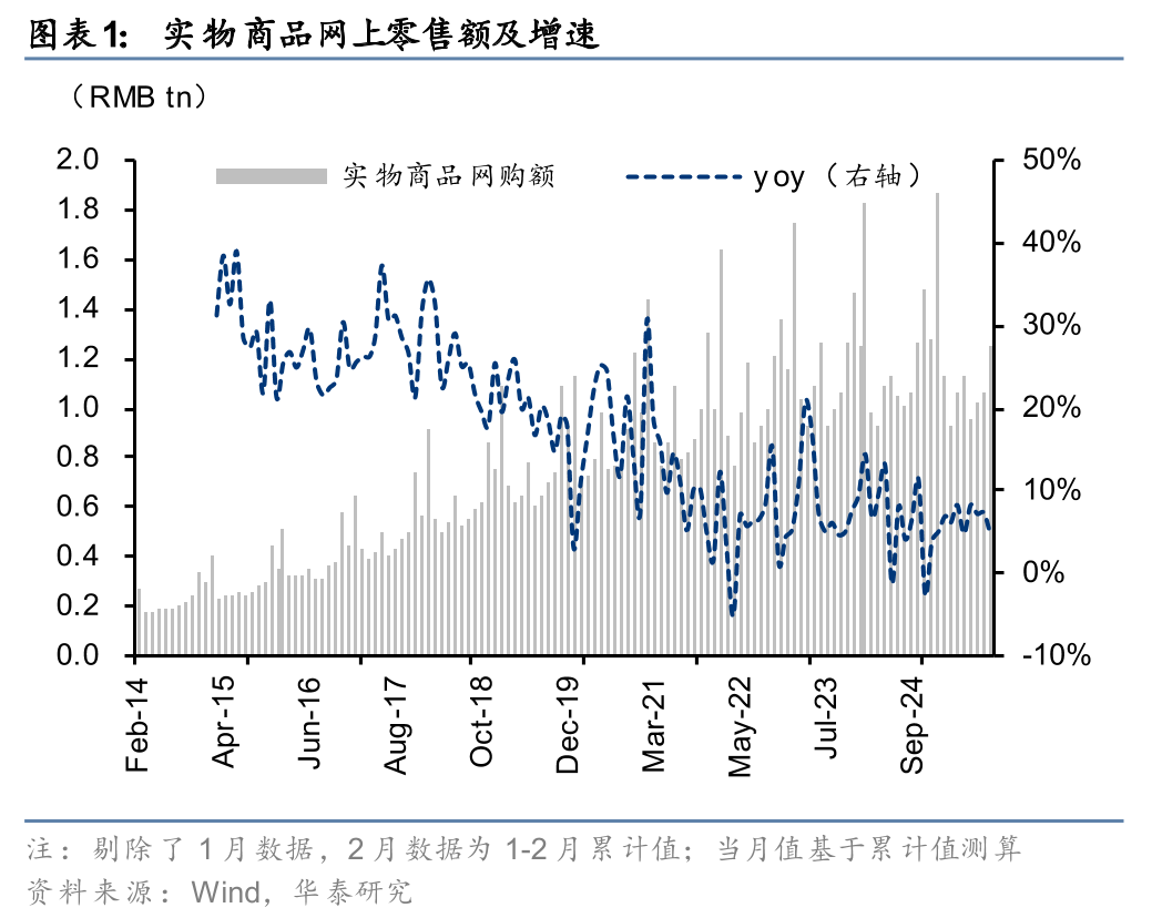 10月,社零总额同比+2.9%(9月:+3.0%),商品零售额同比+2.8%(9月:+3.3%),主因“以旧换新”政策效应减弱叠加去年同期高基数。线上消费亦放缓,但在大促提振下相对有韧性。10月,实物商品网上零售额同比+4.5%(9月:+7.3%),实物商品网上零售额占社零总额的比例(线上消费渗透率)同比/环比分别+0.5/+1.7pct至26.9%。