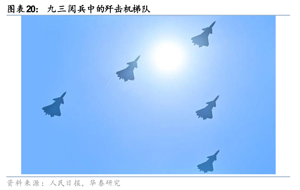 新一代航空航天装备需求有望持续增长,建议关注军机和导弹产业链。“十四五”以来,四代装备加速发展,歼-20A、歼-20S、歼-35A等隐形战机,歼-35、歼-15T、歼-15DT等舰载机,鹰击-21、东风-17、东风-26D等高超声速导弹等代表性装备亮相九三阅兵。我们预计,新型四代装备或将成为“十五五”时期我军武器装备建设重点方向之一。