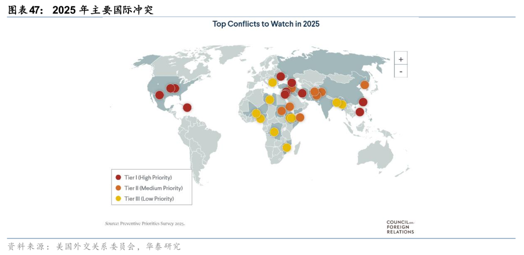 世界进入新的动荡变革期,俄乌、巴以、印巴、以伊等局部冲突不断。近几年,全球进入二战结束以来军事冲突最多的时期。2021年9月,习近平主席以视频方式出席第七十六届联合国大会一般性辩论并发表重要讲话,明确指出“世界进入新的动荡变革期”。根据挪威奥斯陆和平研究所报告,2024年全球有36个国家共爆发61起武装冲突,数量达到近80年最高纪录。2025年,俄乌冲突持续,巴以、印巴、以伊等局部冲突不断,2025年5月7日,印度空军发动“朱砂行动”,对巴基斯坦境内的“恐怖主义设施”进行了袭击,巴基斯坦方面称“出于自卫”击落了6架印度军机;2025年6月12日,以色列对伊朗发动袭击,作为对以军袭击的回应,伊朗在6月13日晚间开启“真实诺言-3”行动;至2025年10月,新一轮巴以冲突延宕已两年,造成前所未有的人道灾难。