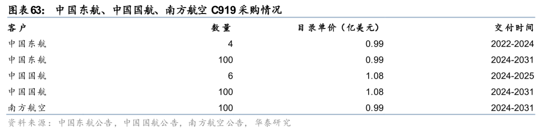我们认为,零部件、机体制造商和航材经销商有望受益于C919生产交付提速,原材料、机载设备、航空发动机等国产化空间广阔。