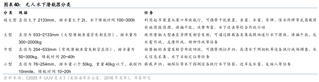 无人水下潜航器(UUV)是一种以水面舰艇/潜艇为投送平台,能长期在水下自主航行,并可通过搭载多种载荷执行特定任务的智能化装置。UUV具有隐身性能好、效费比较高、机动性能好、作战用途广等优势,主要承担海洋环境监视和调查、情报/侦察/监视、反水雷、时敏打击、反潜战、特种作战等任务。