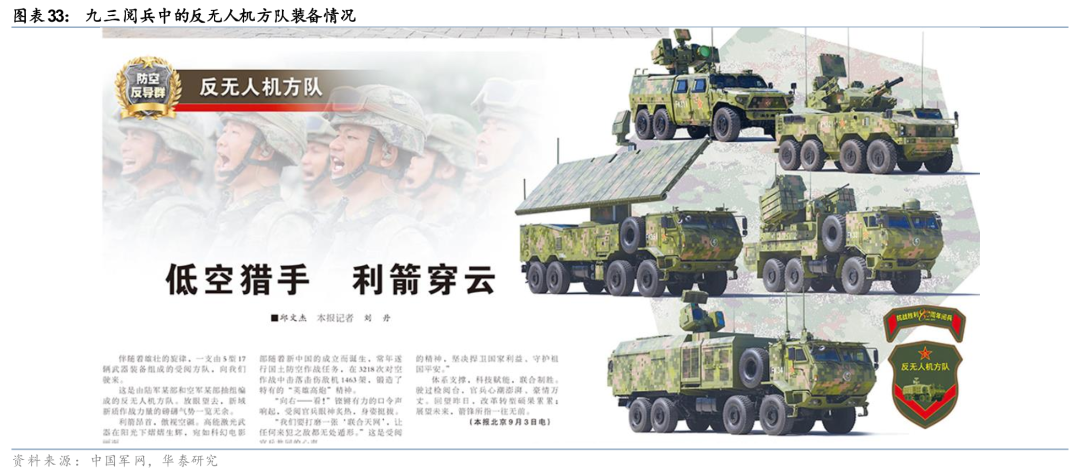 我国具备多种反无手段,反无技术已形成成熟战斗力。2025年九三阅兵中,多型反无人机装备参加检阅。反无人机方队是防空反导作战群的一支方队,作为新域新质作战力量,该方队共有5型17辆装备接受检阅,它们基于模块化、开放式结构,有机集成反无弹炮系统、高能激光武器、高功率微波武器等装备,综合运用“弹、炮、光、波”等作战手段,既能软杀伤、又能硬摧毁,标志着我国反无技术处于领先地位。
