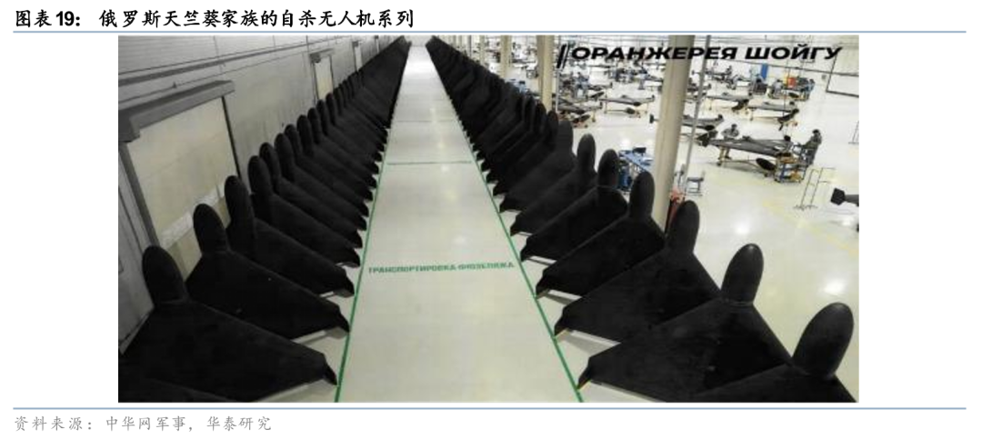 俄乌冲突革新无人机应用模式,无人机进入主战装备序列。俄乌冲突被称为“第一场全面的无人机战争”,无人机在冲突中的作用被充分挖掘。俄乌冲突自2022年2月以来已持续了超过3年的时间,双方均在对抗中使用了大量无人机装备,不论是数量还是种类都远超此前的任何一场对抗。俄乌双方在无人机应用上进行了创新,首先在无人机种类上,除军用无人机外,作战双方都使用了大量的商用无人机作为前线侦查设备,并为后方火力提供更准确的敌方位置信息,民用无人机深度参与作战;其次双方都大量使用了自杀式无人机(Kamikaze drone)或巡飞弹(Loitering munition),使无人机消耗品的属性大幅强化,并且也有部分民用无人机被改装为单程自杀式无人机进行作战。