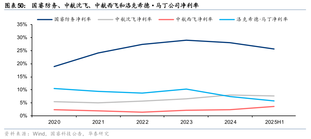 发展军贸有望提升企业盈利能力。2022-2024年,国际化业务占比较高的国睿防务销售净利率在25%以上,2025H1国睿防务销售净利率25.72%;美国军工上市公司洛克希德·马丁2020-2023年销售净利率在10%左右;国内军机主机厂中航沈飞近几年销售净利率有所提升,但仍不到8%,2024年和2025H1中航沈飞销售净利率分别为7.97%和7.74%,中航西飞2024年和2025H1销售净利率分别为2.37%和3.55%,销售净利率不足4%,中航成飞2025H1销售净利率4.44%。我们认为,发展军贸业务,借助外销溢价,有望提升国内军工企业盈利能力。以军贸反哺国内武器装备科研生产,是武器装备高质量发展的重要途径之一。