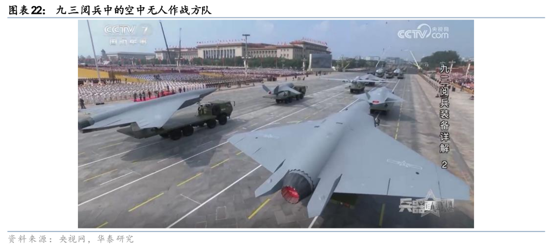 两型无人僚机和两型无人制空作战飞机亮相九三阅兵,体现航空装备无人化、智能化发展趋势。无人僚机可以与有人作战飞机编队,实现高效协同。无人僚机具有隐身能力和一定的自主性,与先进有人战机联合作战时,可以针对任务区域进行飞行路径设置,也可以有效执行侦察、攻击、支援和辅助有人机等任务。无人制空作战飞机具有隐身能力,制空作战对于飞机机动性要求非常高,因此,无人制空作战飞机需要具有高机动性能和高自主作战能力。九三阅兵展示的武器装备都是我军现役武器装备,“十五五”规划建议稿提出,要加快无人智能作战力量及反制能力建设,具有隐身和自主能力的无人僚机和无人制空作战飞机有望成为“十五五”时期武器装备建设的重点方向之一。