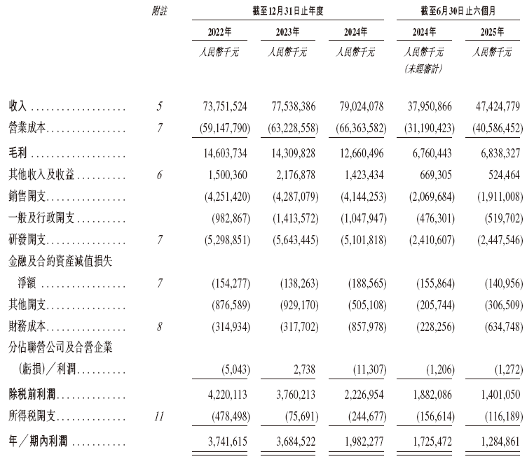 招股书显示,在过去的2022年、2023年、2024年和2025年前六个月,紫光股份的营业收入分别为人民币737.52亿、775.38亿、790.24亿和474.25亿元,相应的净利润分别为人民币37.42亿、36.85亿、19.82亿和12.85亿元。
