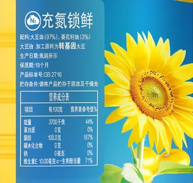 兰世立紧接着转向了这桶油的配料表:葵花籽油只占3%,97%是大豆油。
