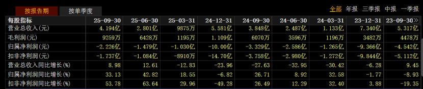 今年前三季度,众泰汽车实现营收4.19亿元,同比增长8.98%;归母净利润亏损2.23亿元,同比增长33.13%。拉长时间看,这家曾风光一时的车企已连续六年深陷亏损,2019年至2024年累亏超250亿元。