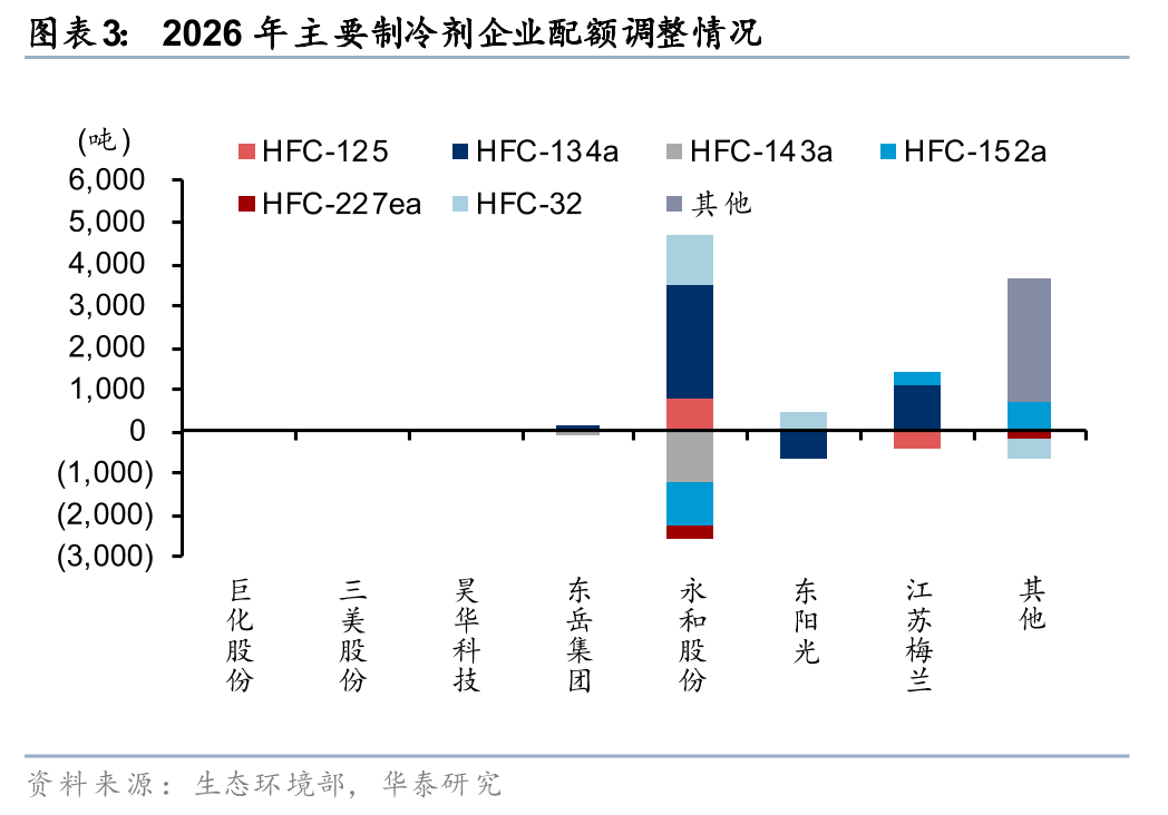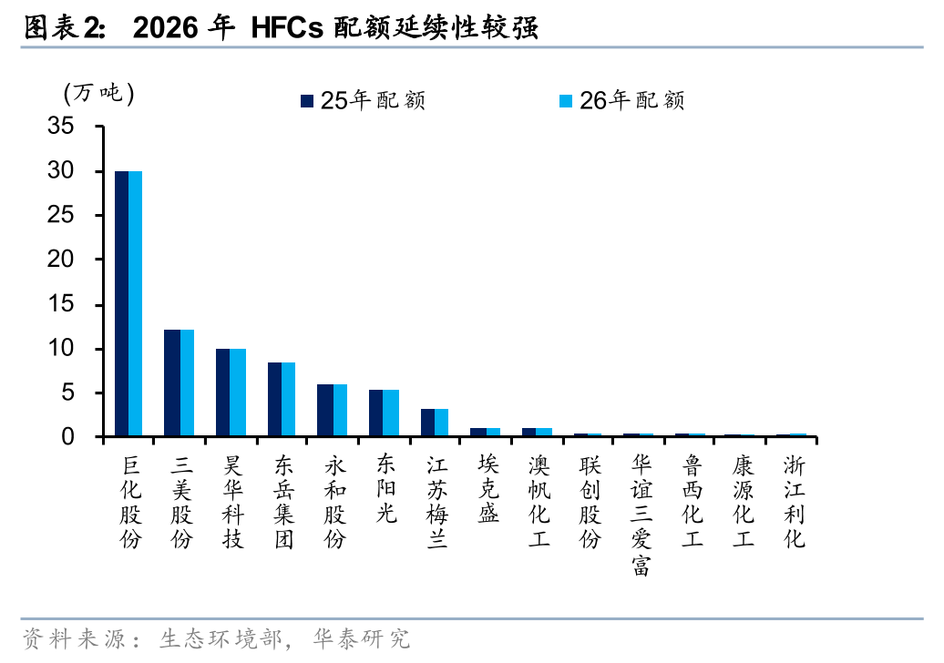 26年HFCs企业配额延续性较强,部分企业少量调整配额