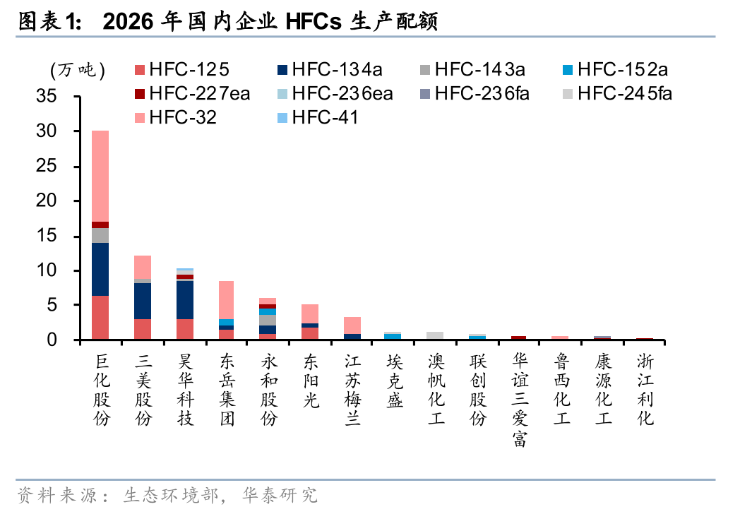 2026年HCFCs/HFCs企业配额发布,HFCs供需或延续偏紧