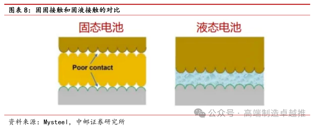 目前固态电池量产过程中面临固-固界面接触和传统压实工艺的局限性的两大核心难题。固态电池凭借固态电解质替代传统电解液和隔膜,实现了安全性与能量密度的双重突破,实验室样品能量密度已达500Wh/kg,远超传统锂电池的300Wh/kg 水平,但目前固态电池量产过程中面临两大核心难题:(1)固-固界面接触问题:固态电池的正极、电解质、负极均为固体,叠合后易出现三类界面缺陷:一是循环过程中的接触劣化,导致固体层逐渐分离;二是孔隙残留,叠压后内部存在微小空隙;三是颗粒接触不足,电解质与电极颗粒贴合不紧密。这些缺陷会直接导致内阻升高、充放电效率下降,且易引发锂枝晶生长,带来安全隐患。(2)传统压实工艺的局限性:传统辊压工艺通过垂直方向施压,存在明显的边缘效应和层间滑移问题,致密度难以突破85%;热压工艺虽能辅助升温压实,但单向施压导致密度不均,且高温易引发材料反应(如硫化物电解质与正极的反应),破坏电池结构。