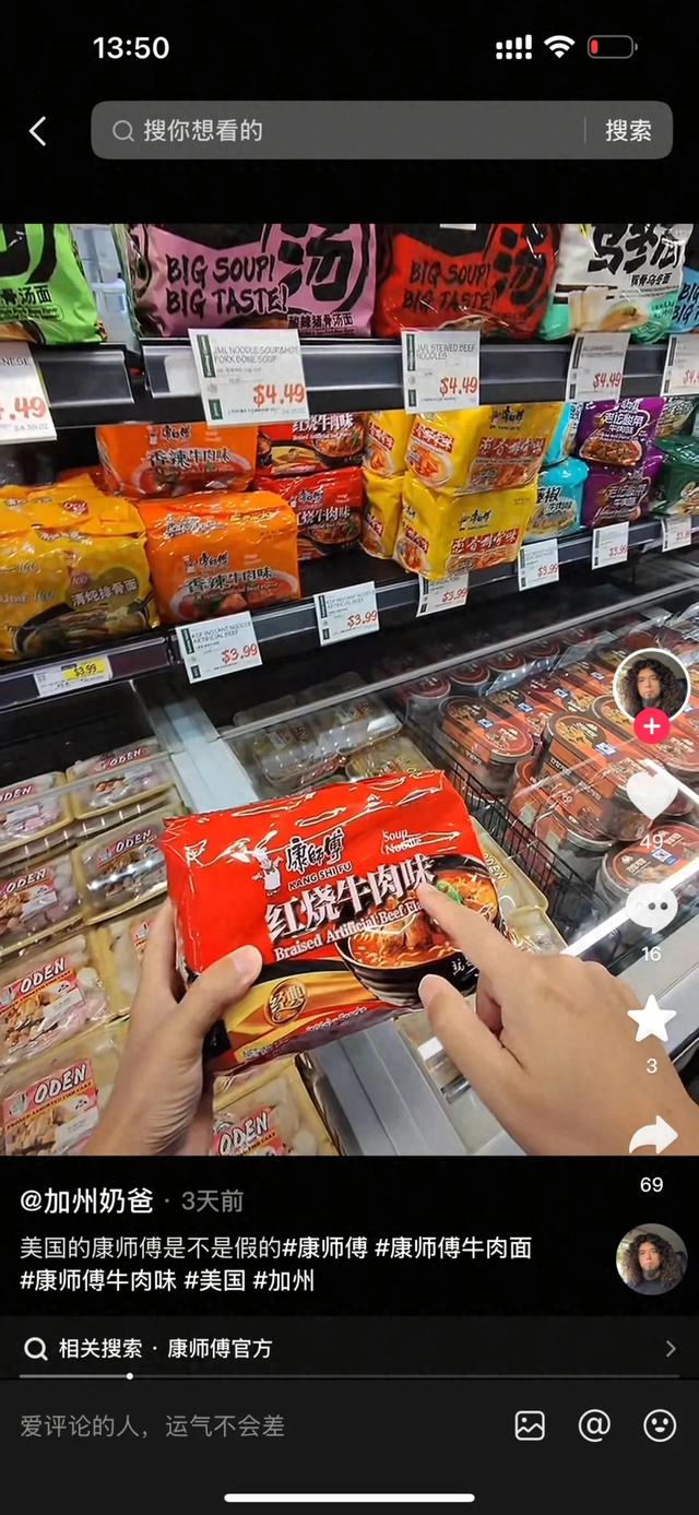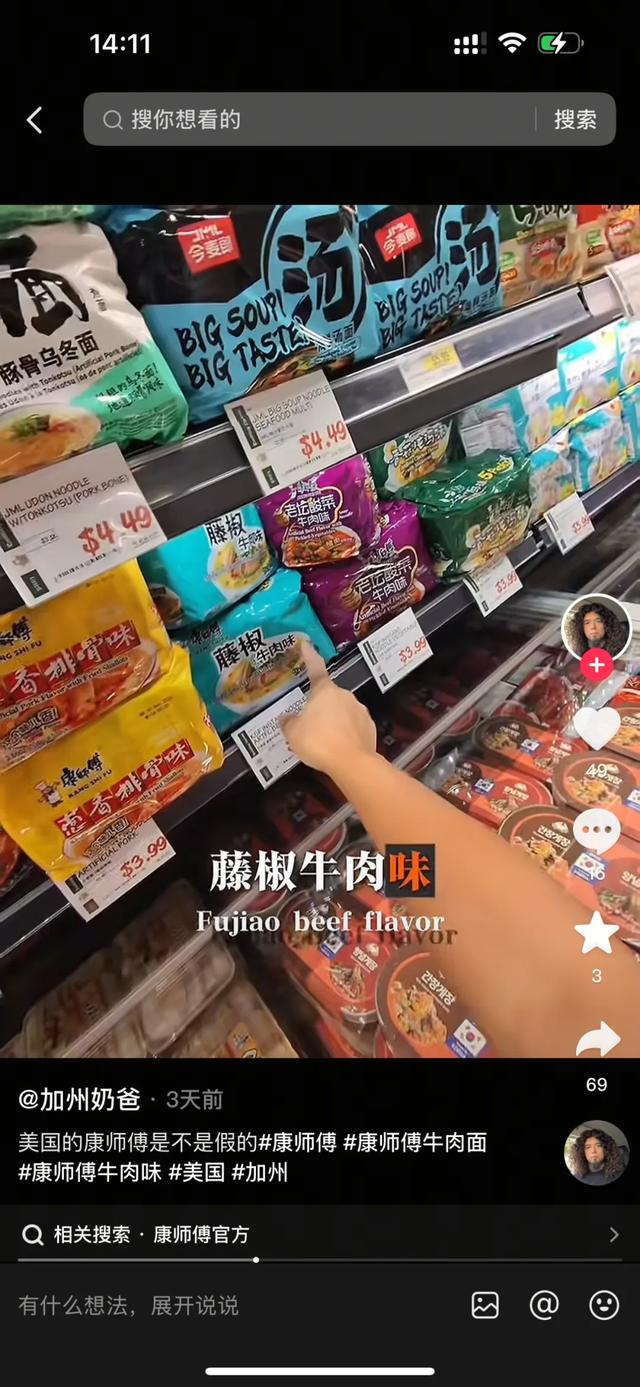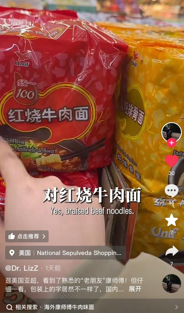 还真有一位在美国的博主在当地超市拍到了统一和今麦郎的产品,尽管是同样的市场,统一和今麦郎还是没有让人失望。