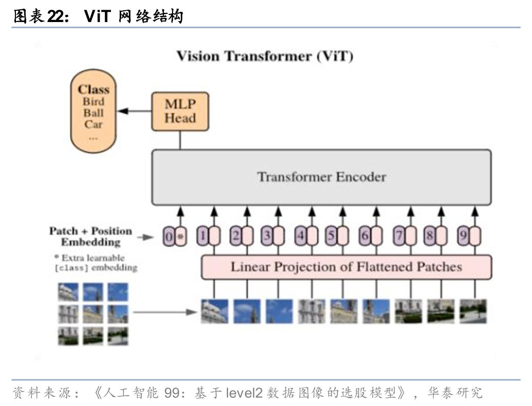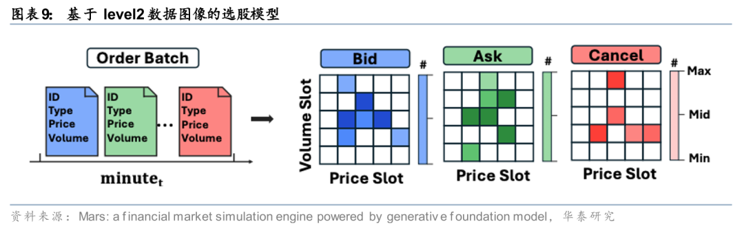当数据频率从分钟频进一步提升至逐笔订单级别,此前介绍的《人工智能99:基于level2数据图像的选股模型》(20251224)则尝试将长时间序列的level2数据图像化,并利用同为分块建模思想的ViT(Vision Transformer)等模型进行建模,保留长时间尺度下level2数据的局部特征和不同时点、不同日期下市场微观结构变化的整体特征。