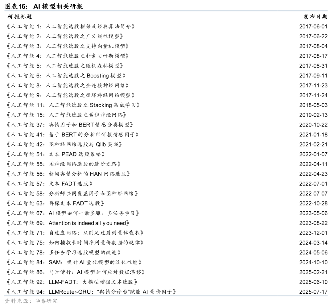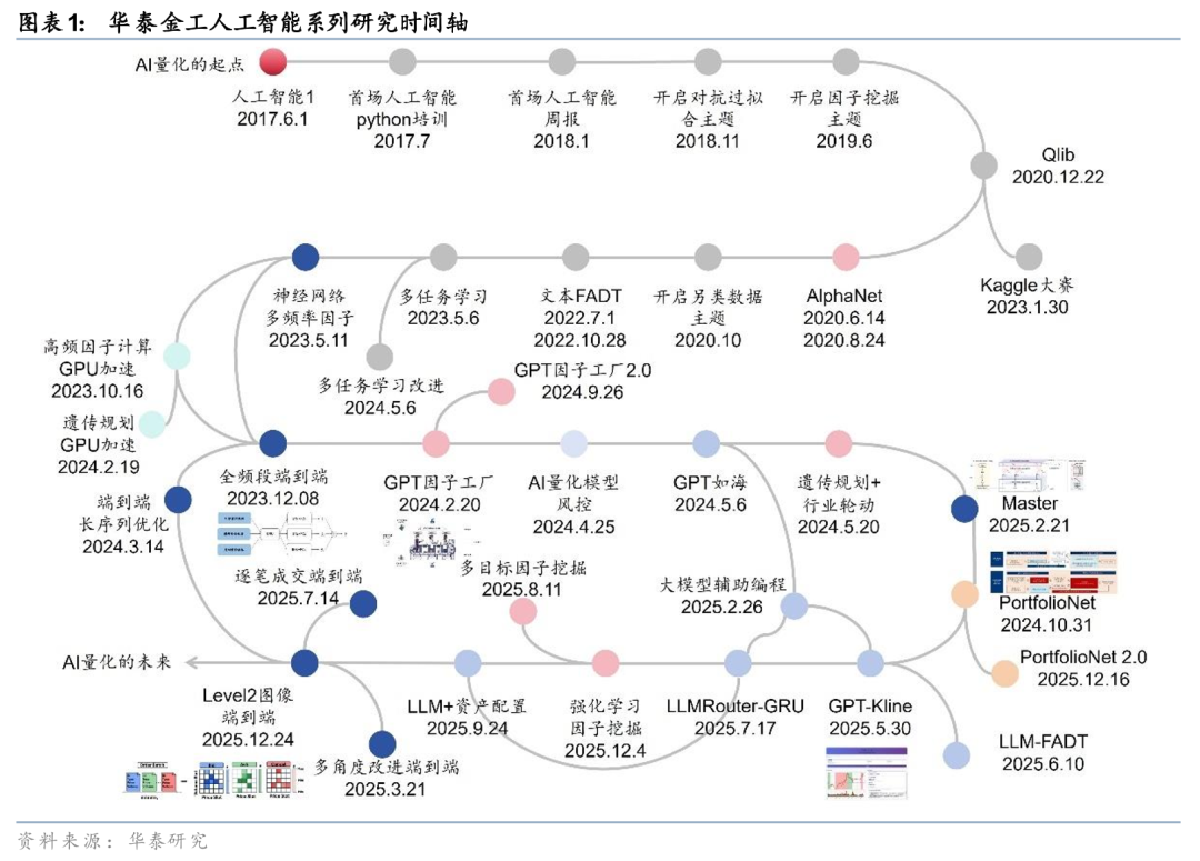本文是华泰人工智能系列的第100篇研究报告。过往的八年半里,我们亲历了量化投资行业的这场深刻变革:技术路径上,从早期的机器学习,演进到深度学习,再到如今以大语言模型为代表的新范式。应用场景上,从早期的因子合成,拓展至因子挖掘与端到端建模,进而渗透到组合优化、行业轮动、资产配置、流程管理等投资的各个环节。行业认知上,从最初的质疑与观望,逐渐转向接纳与尝试,直至今日的全面拥抱。第100篇研究,既是对过往足迹的回顾,也是对未来征途的眺望。