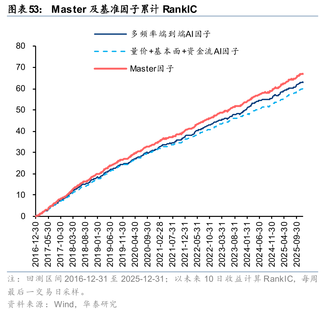 华泰金工前期研究《人工智能86:与时偕行:AI模型如何应对数据漂移》(20250221)基于GRU和三层注意力的Master模型,通过线性门控/注意力门控模块引入市场特征变量得到Master因子,因子在样本外的表现持续较优。