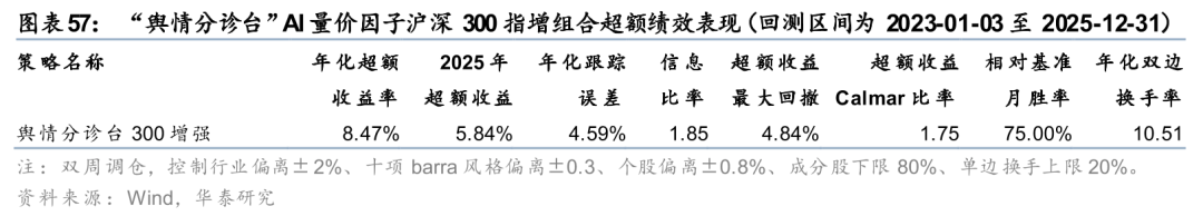 “舆情分诊台”因子将大语言模型(LLM)对新闻舆情的情感分析能力引入AI量价模型,基于市场情绪动态选择AI量价专家路由,“情绪分域、量价建模”,有效融合了另类舆情信息与量价数据,提升指数增强组合表现。详见报告《LLMRouter-GRU:“舆情分诊台”赋能AI量价因子》(2025-07-17)。