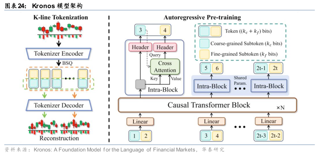 然而,基于通用数据训练的时序大模型显然无法胜任股票预测任务,因此基于金融领域原生数据的预训练或微调是必然选项。Shi等(2025)基于全球数十个市场、多频率的百亿量级K线数据,训练基座模型Kronos,是对金融市场领域原生大模型的有意义探索之一。