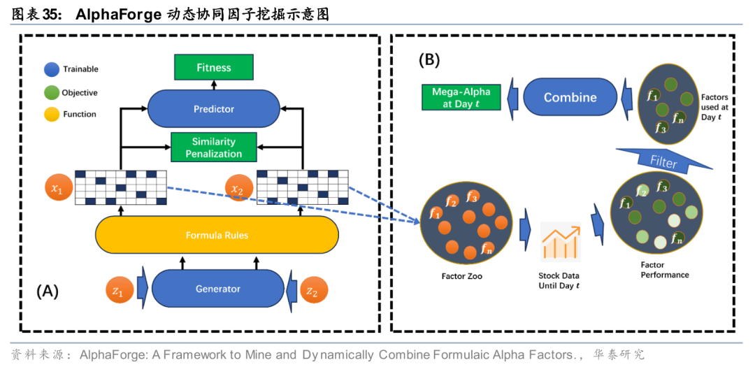 具体而言,AlphaForge提出了一种动态的因子合成与更新机制。它不仅挖掘基础公式,还通过基因拼接(Gene-splicing)等算子寻找能与现有因子库产生正交贡献的新因子。更重要的是,这类框架引入了动态权重调整机制,能够实现基于市场环境变化实时重组因子。这种从单枪匹马到协同进化的转变,可能会使得多因子体系利用大量弱信号构建出强健的综合因子,有效应对市场风格的快速切换。