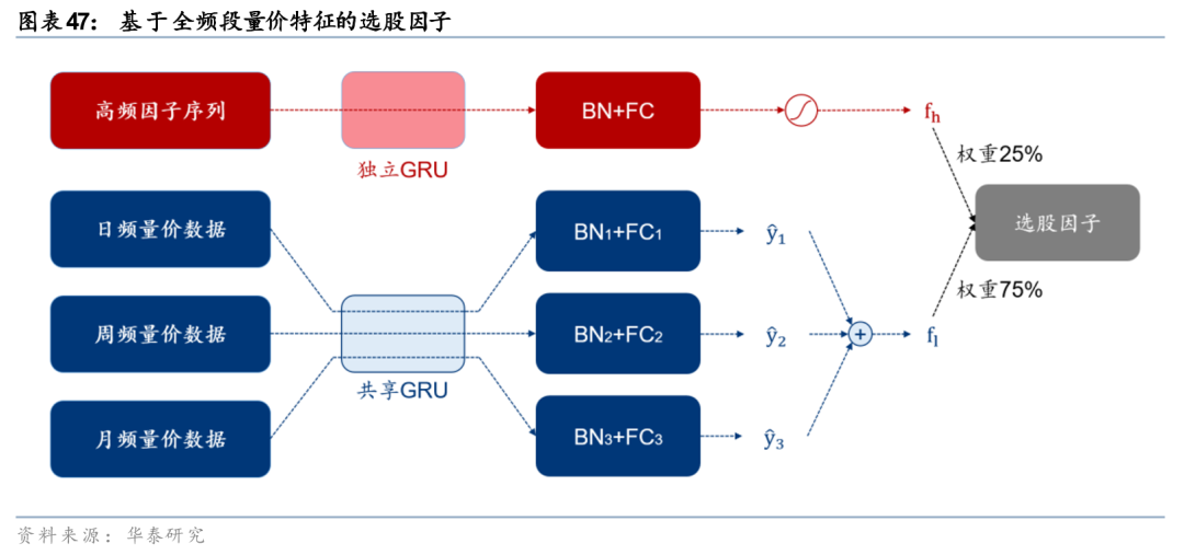 目前,针对不同频段的量价数据,我们通常采取分别训练深度学习模型,而后在最终预测信号或组合层面进行融合的方式。该方法调参简单、算力需求较低,但存在各模型可能学到重复信息的不足。采用多频段量价数据联合训练,或是一条新的探索路径。
