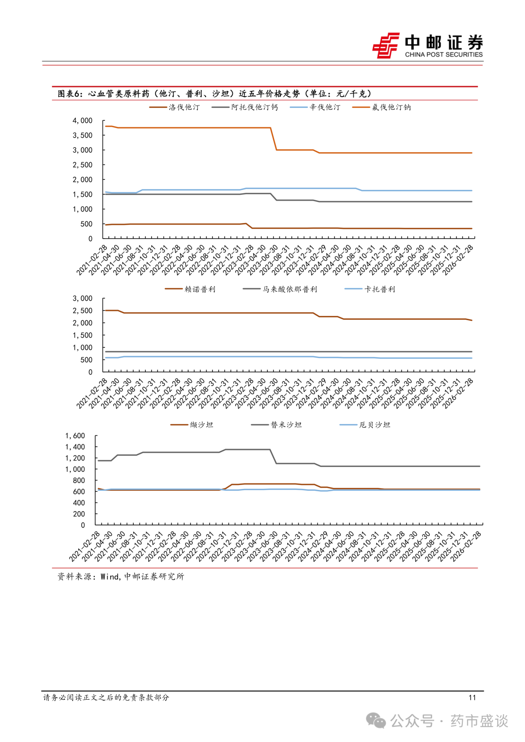 此外抗生素原料药中,青霉素类受印度MIP政策影响价格有所抬升,以6-APA涨幅最为显著。激素与解热镇痛类、心血管类原料药价格运行较为平稳,兽药原料药及肝素原料药价格下行后于低位企稳。