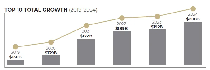 图片说明:全球十大品牌授权增速,数据来源于国际授权业协会