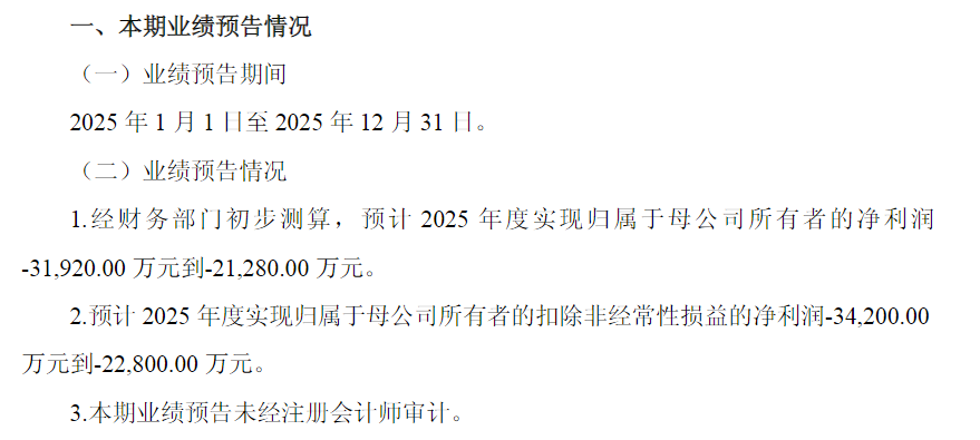 莎普爱思1月29日发布的2025年业绩预告显示,预计2025年归母净利润亏损2.13亿元到3.19亿元,上年同期亏损1.23亿元。